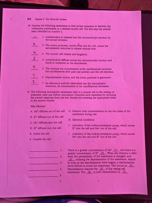 Chapter 6 the muscular system coloring answers. The human body is wondrously complex with 700 muscles 206 bones and countless cells and tissues. Insert the correct answers in the numbered answer blanks. Chapter 6 The Muscular System SKELETAL MUSCLE ACTIVITY 6.