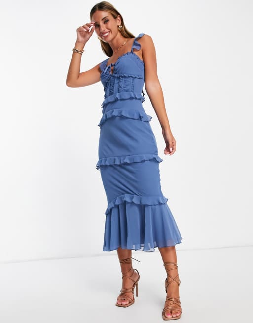 Blue Tiered Midi Dress